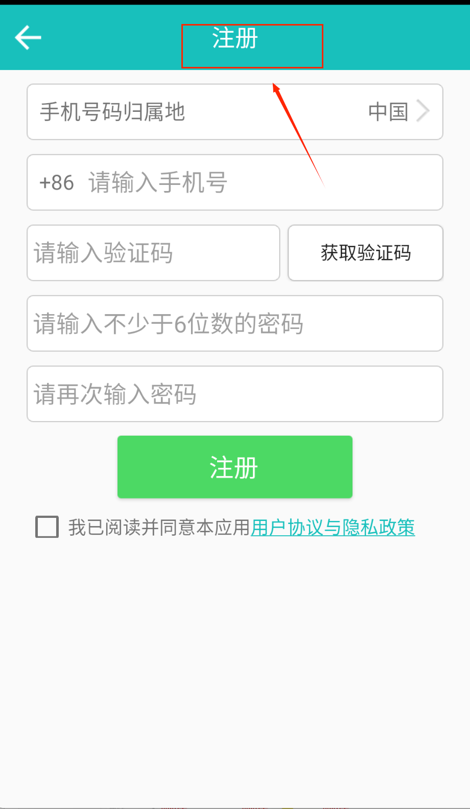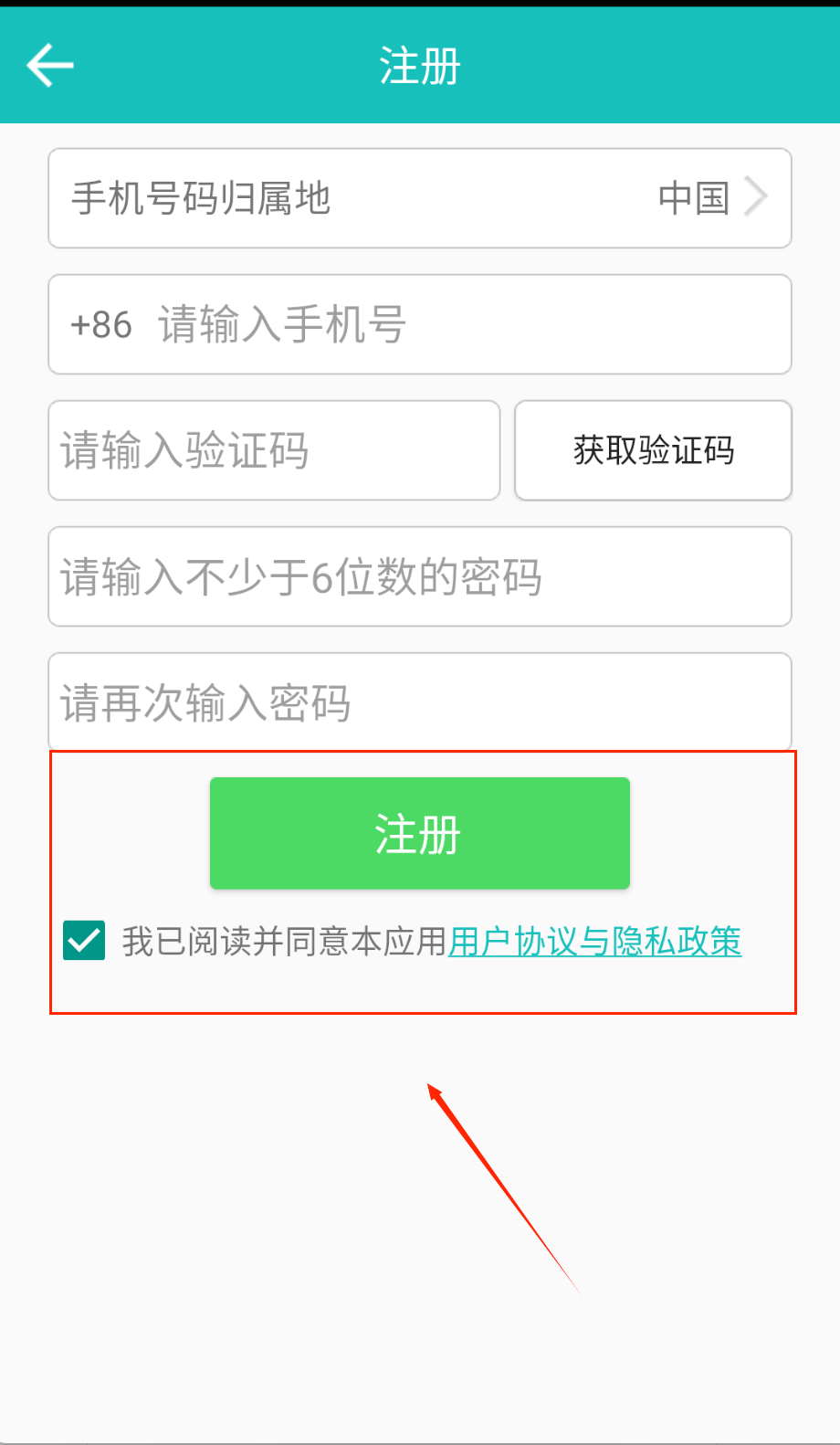 4、仔细阅读用户协议和隐私政策后勾选同意,点击绿色注册按钮完成账号创建哟。