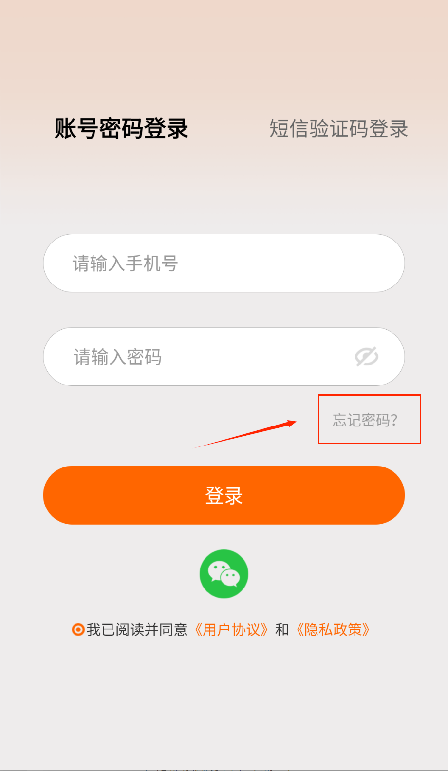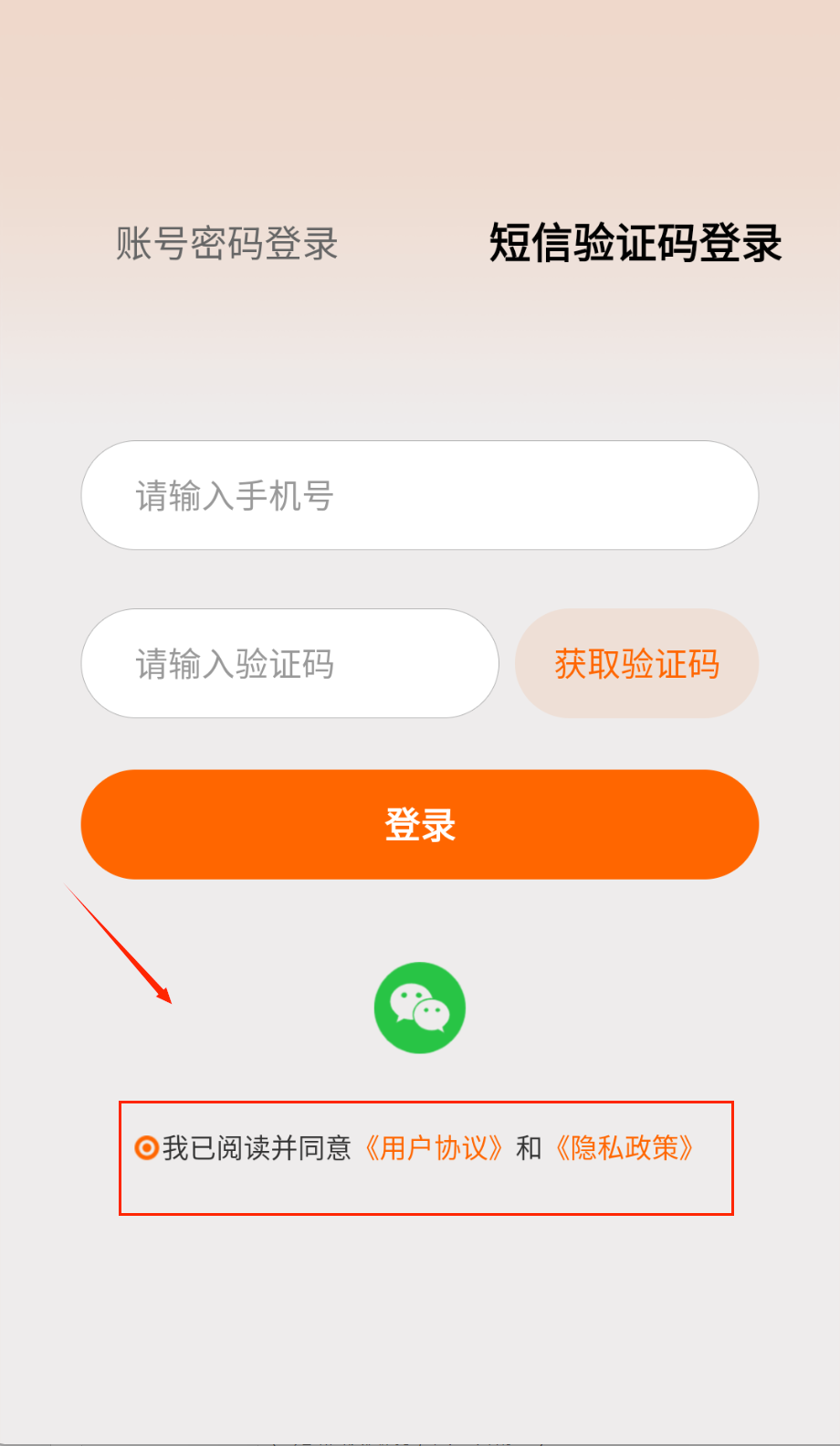 2、填写收到的6位验证码,勾选同意用户协议后点击橙色登录按钮即可进入啦。