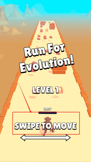 2、在游戏进行中,通过左右滑动屏幕来控制角色移动,收集进化所需的物品。