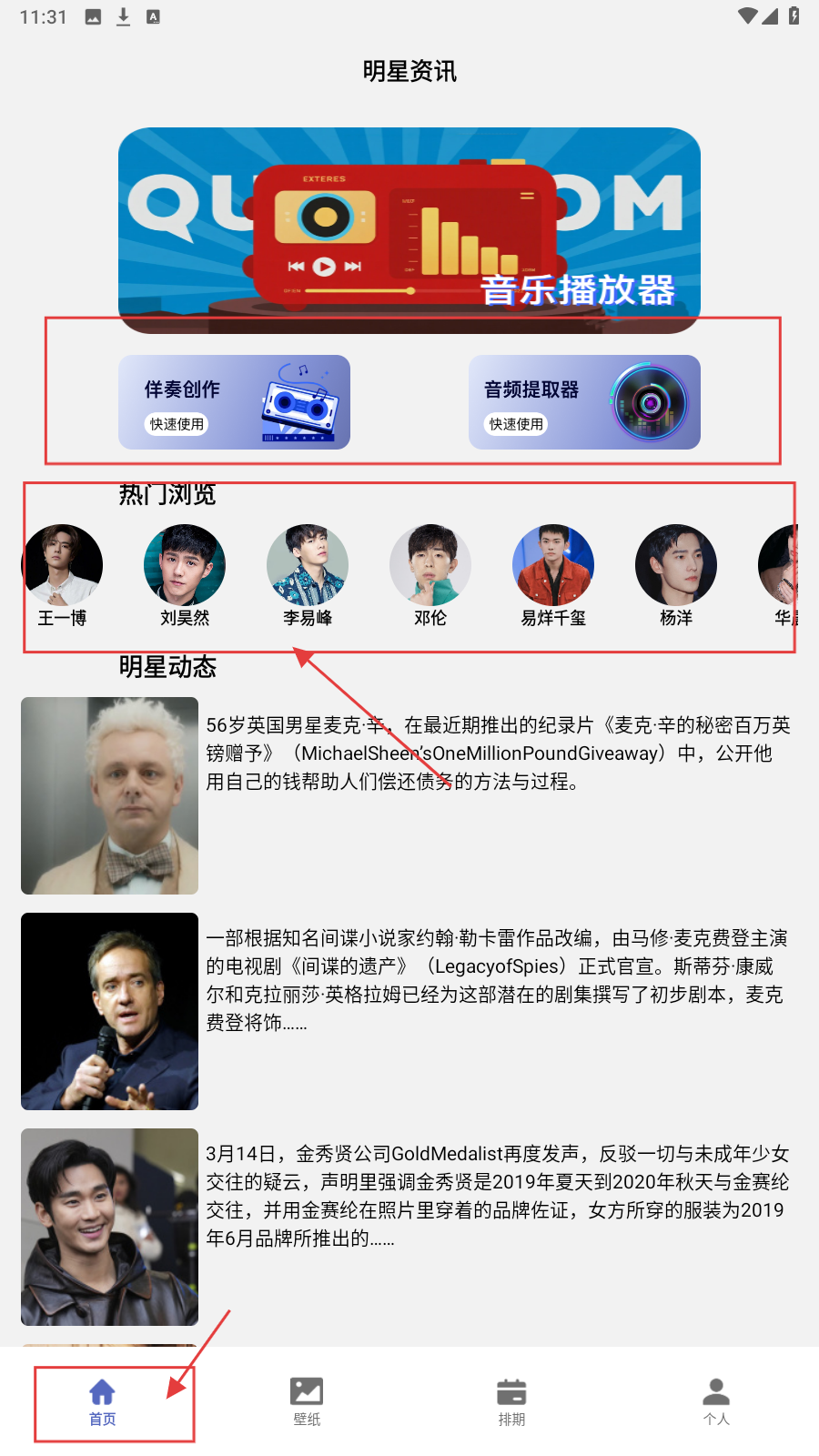1、进入【明星资讯】首页,在【热门浏览】选明星,查看动态或用【伴奏创作】等功能。