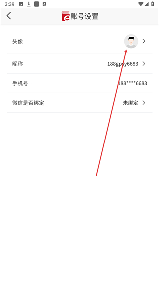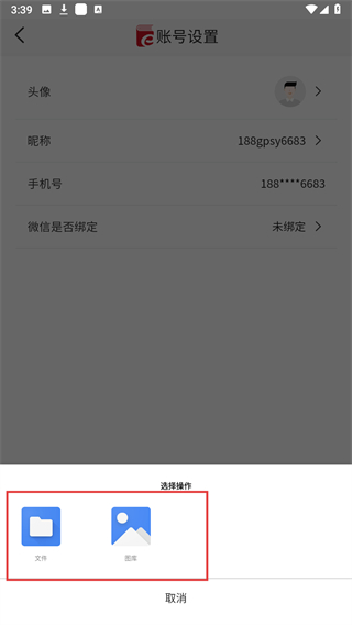 4、在账号设置页面,点击头像选项,选择文件或图库即可。