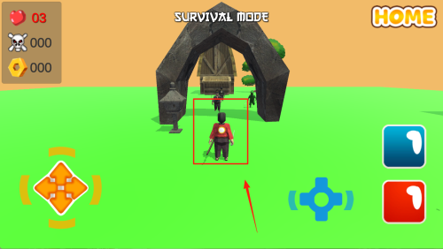 2、进入模式选择后,确认左上角显示“SURVIVAL MODE”,点击“HOME”可随时返回主菜单。