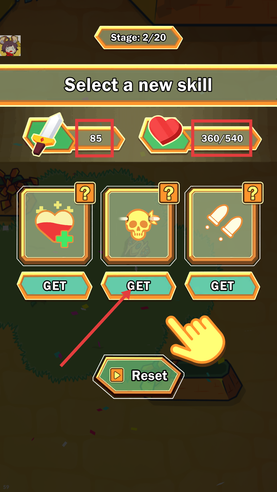 3、当出现技能选择界面时,可根据自身需求选择合适技能,点击【GET】按钮获取,增强战斗能力。