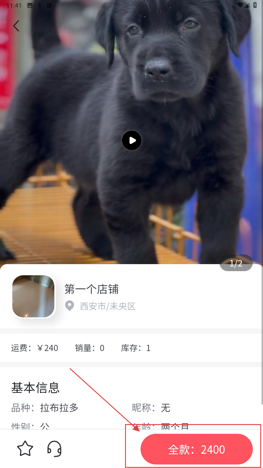 2、点心仪宠物(如高品质小黑拉布拉多),进入详情页看信息。