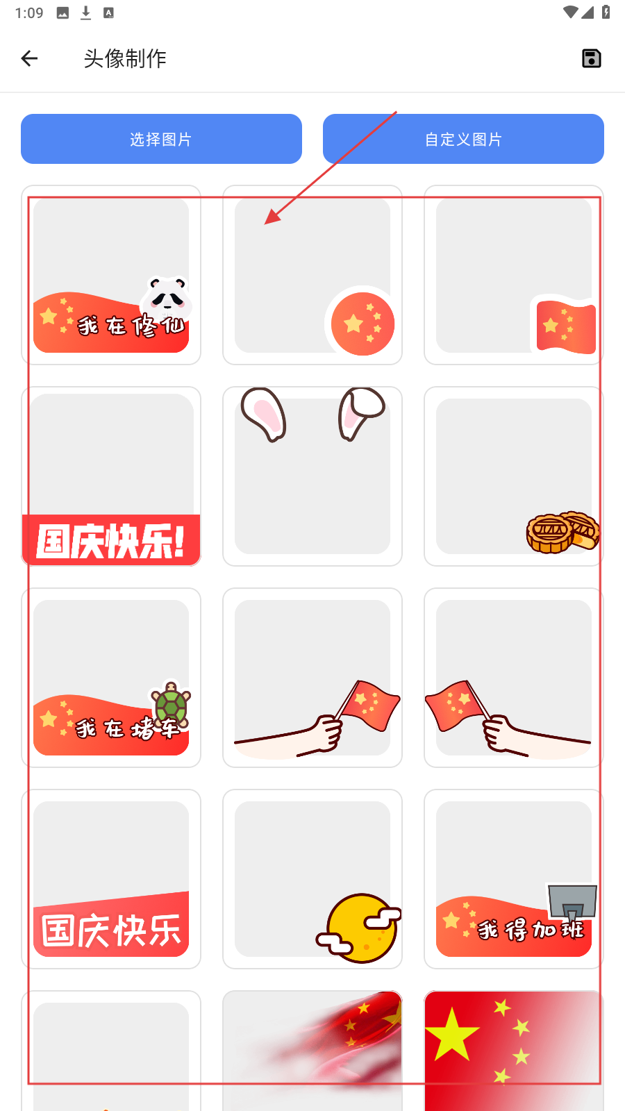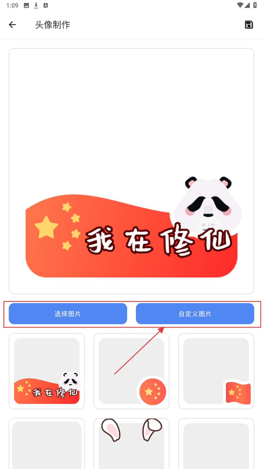 4、选模板后,可点【自定义图片】添加个人图片,或直接用模板生成头像。