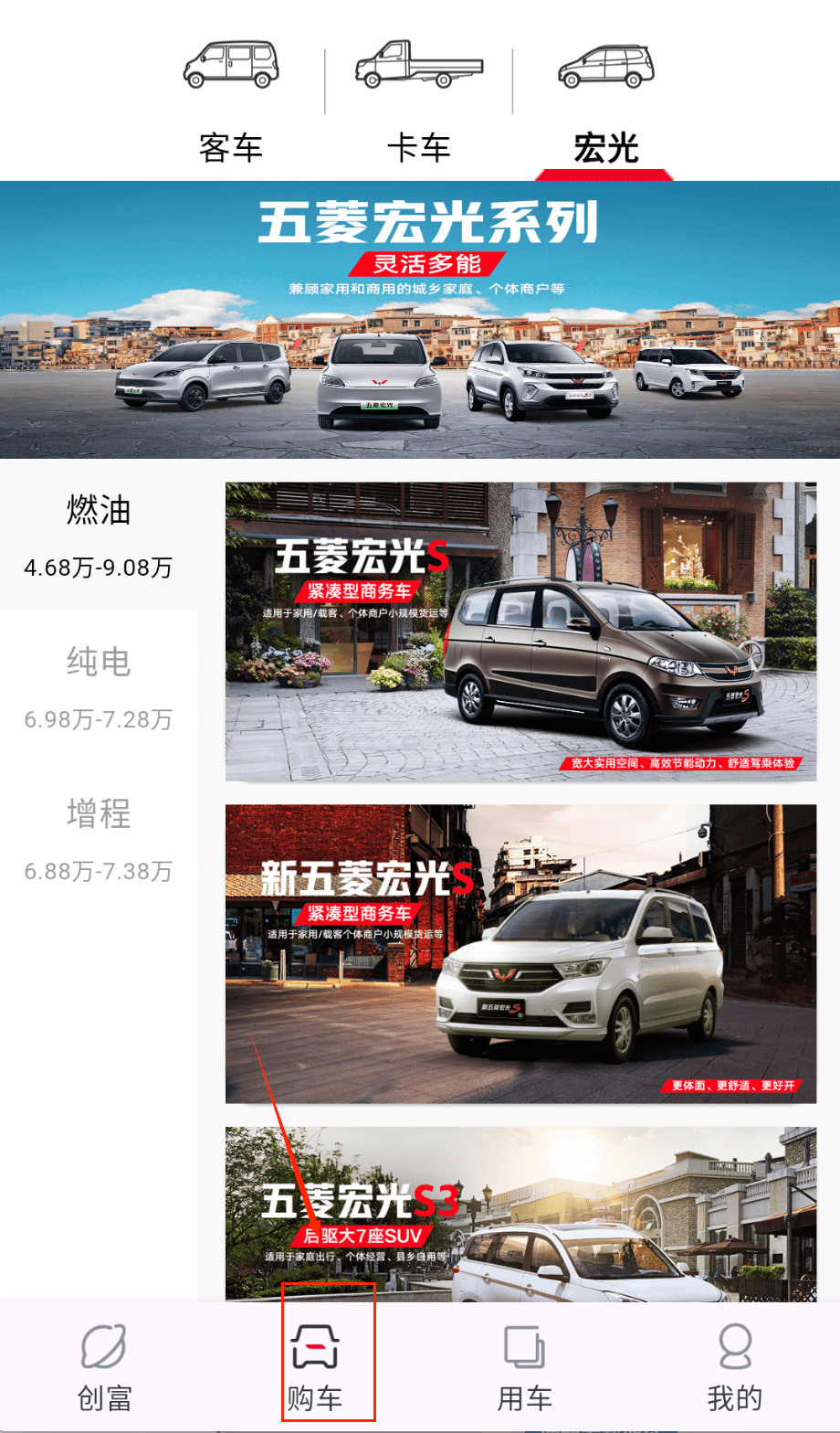 2、购车中心展示五菱全系商用车型,包含详细参数和实车图片,支持在线支付定金锁定优惠啦。