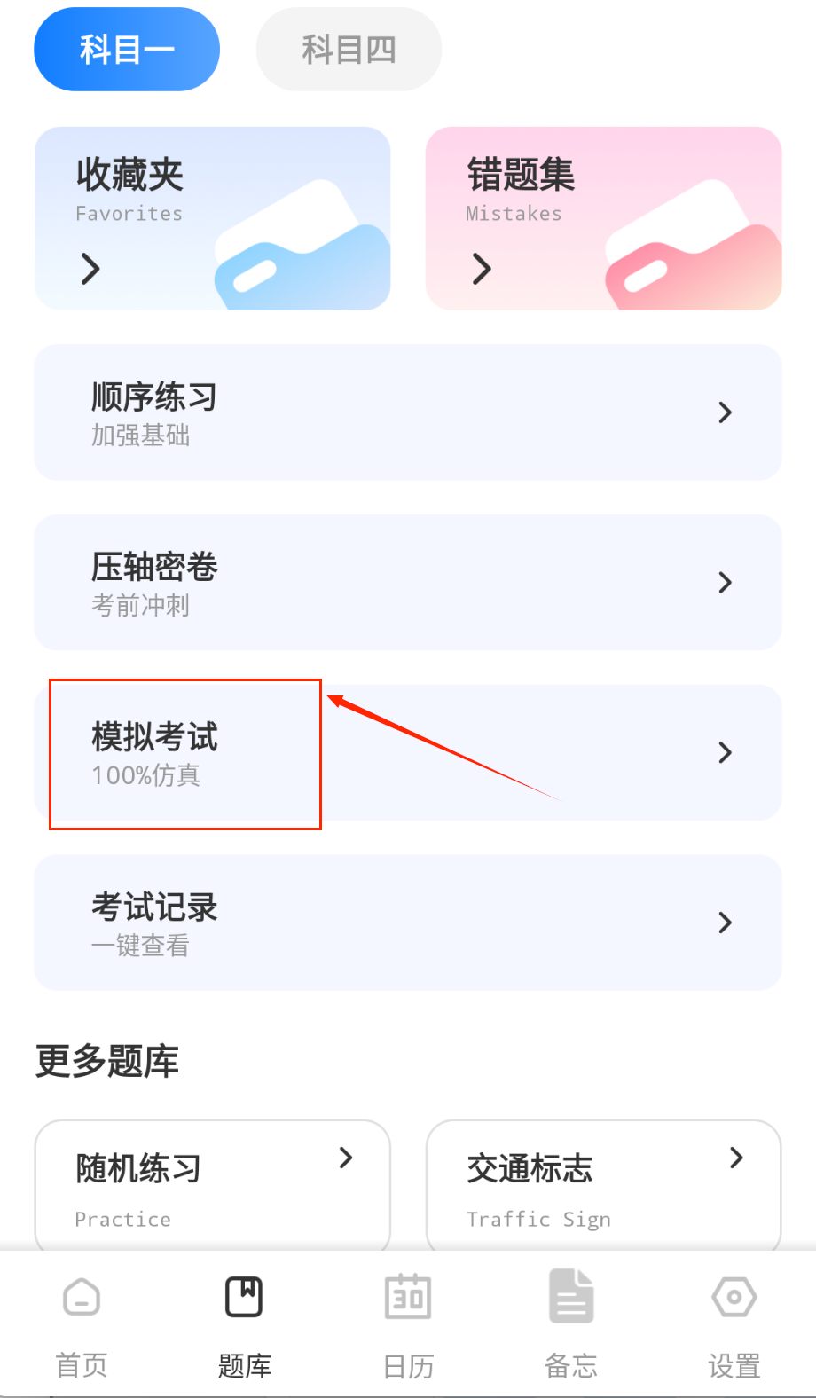 2、题库分为交通法规、安全驾驶等6大模块,可按章节顺序系统学习或针对错题进行专项强化练习啦。