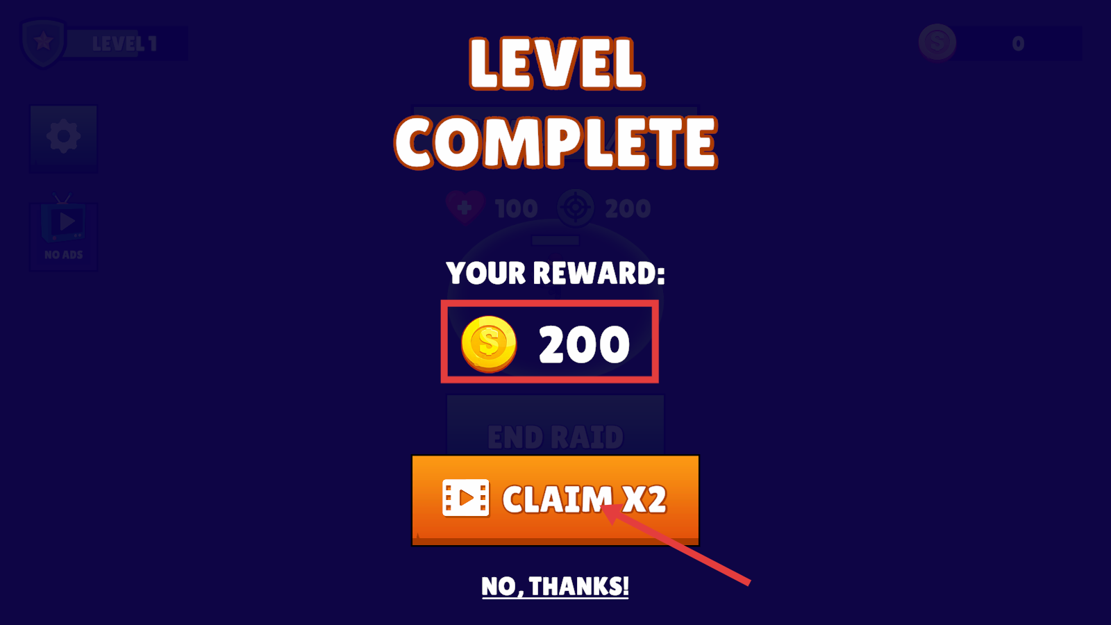 4、通关后领取【200】金币奖励,若想收益翻倍,可点击【CLAIM-X2】观看广告,快速积累资源。