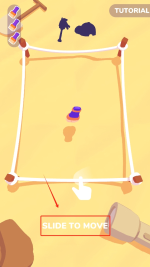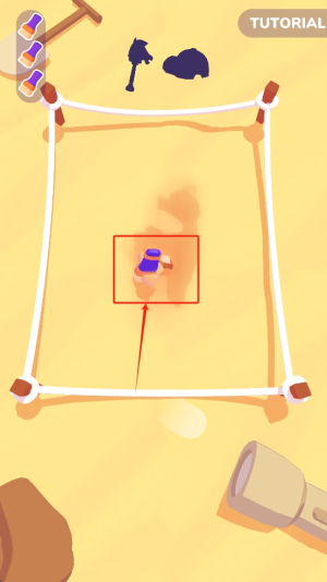 1、滑动屏幕以移动角色在沙地上寻找宝藏。