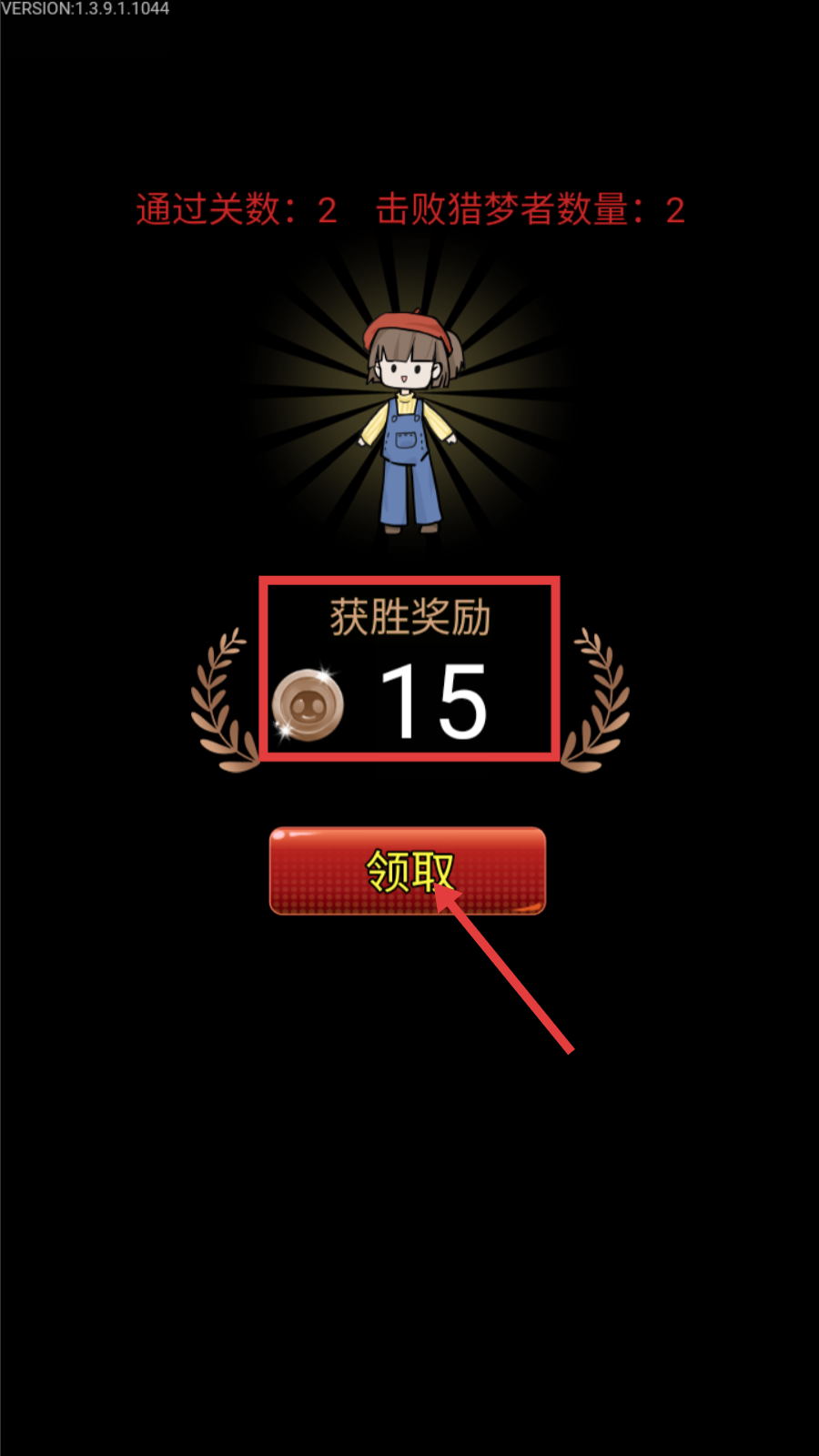 4、通关后点击【领取】,获取【获胜奖励-15】,积累资源用于后续关卡解锁更强建筑与防御手段。