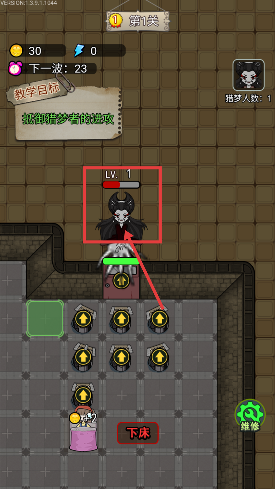 3、面对【LV.-1】猎梦者进攻,依托布置的防御装置输出,关注其血量条,合力抵御确保房间安全。