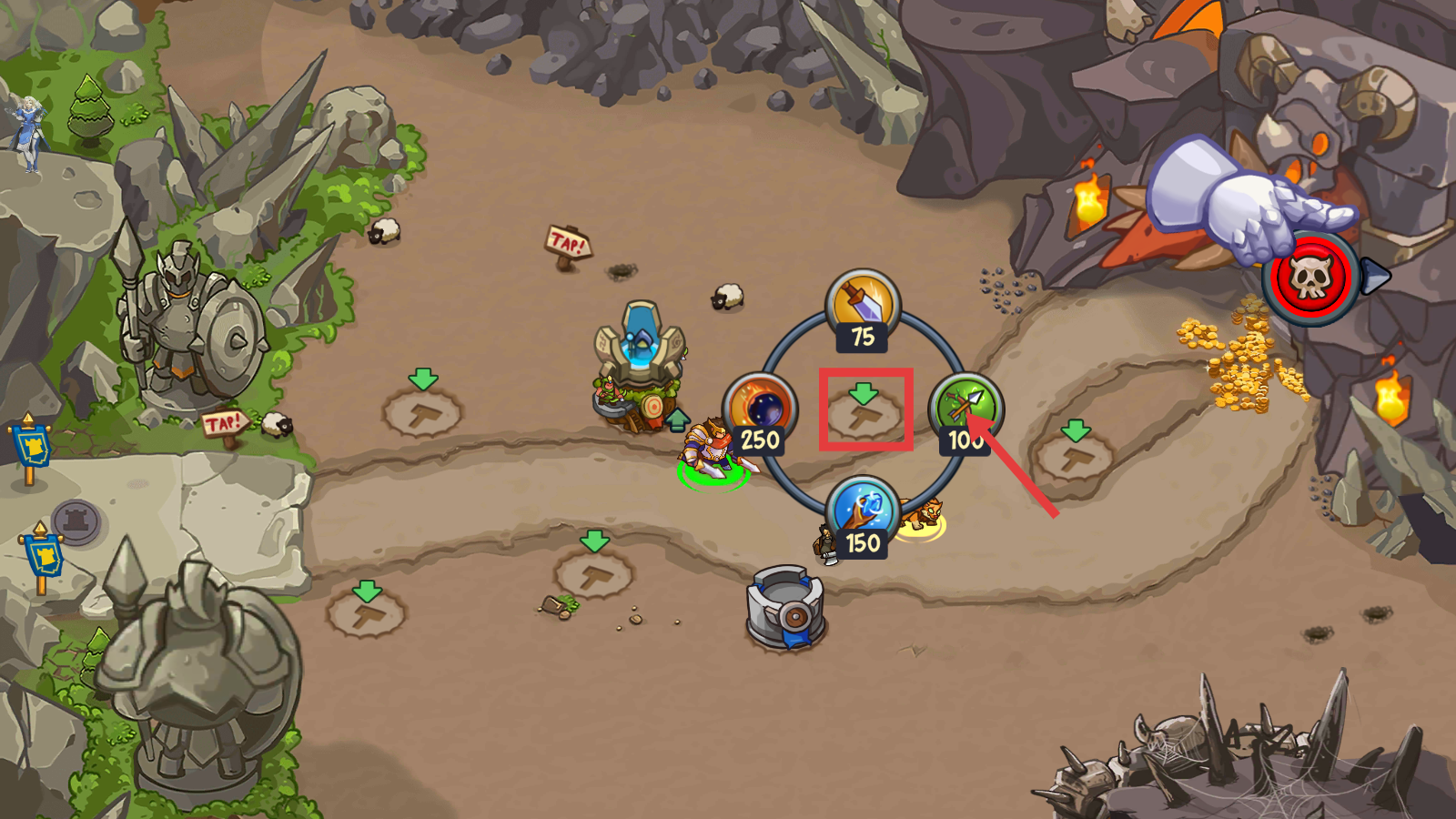 2、战斗时优先选取消耗【100】资源的绿色技能,快速完成部署,借助技能优势压制初期敌人推进流程。