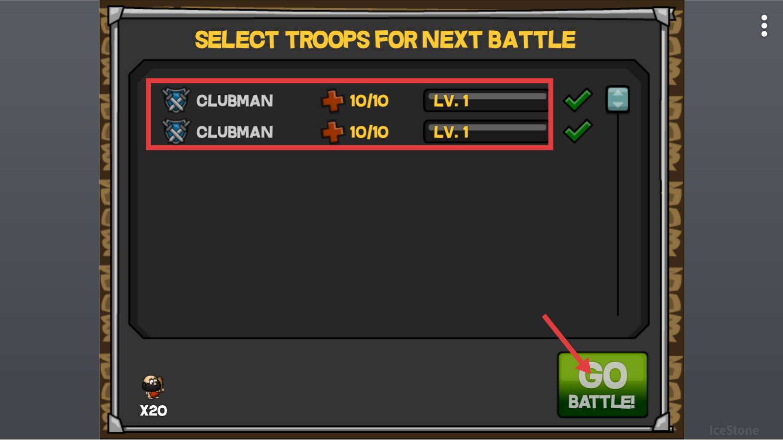 3、战前选两支【CLUBMAN-LV.-1-10/10】部队,确认编队后点击【GO-BATTLE!】,开启战斗流程。