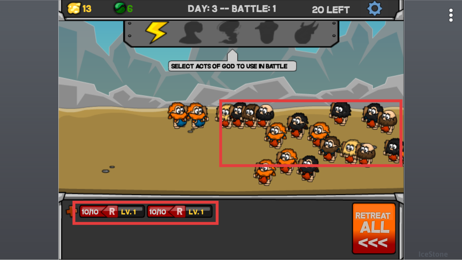 4、战斗时操控【10/10-LV.-1】部队,消耗掉一部分敌人,即可点击右下角按键操纵部队撤退。