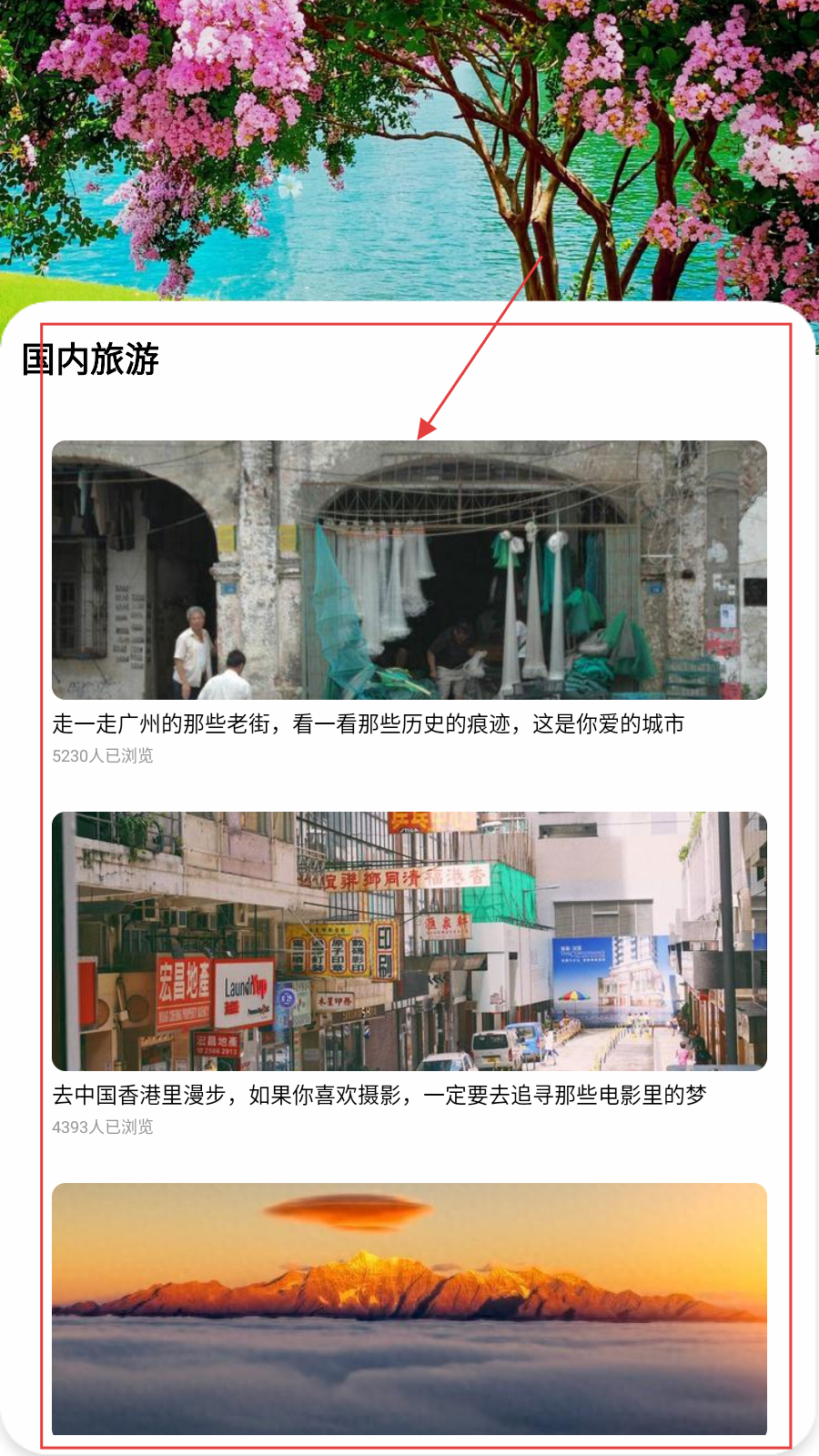 2、点击【国内游攻略】,选择如“广州老街”内容,查看旅行路线与人文介绍。