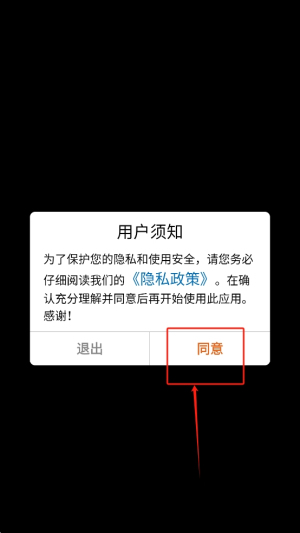 1、同意用户须知:在游戏启动界面,阅读用户须知并点击“同意”按钮,以接受隐私政策。