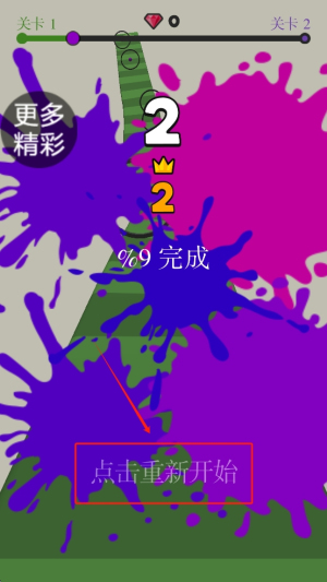 4、重新开始:游戏结束后,点击“点击重新开始”按钮,重新挑战当前关卡或选择新的关卡继续游戏。