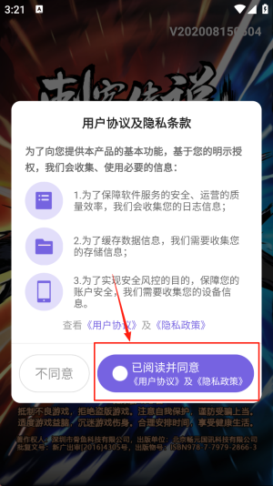 3、同意用户协议:阅读“用户协议及隐私条款”后,点击“已阅读并同意《用户协议》及《隐私政策》”继续 。