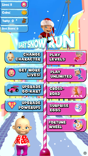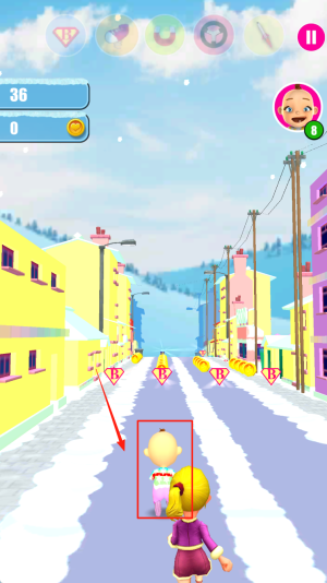 1、操控婴儿跑酷:进入游戏,操控婴儿在雪地上进行跑酷闯关,控制移动方向,让婴儿灵活穿梭,体验跑酷的乐趣。