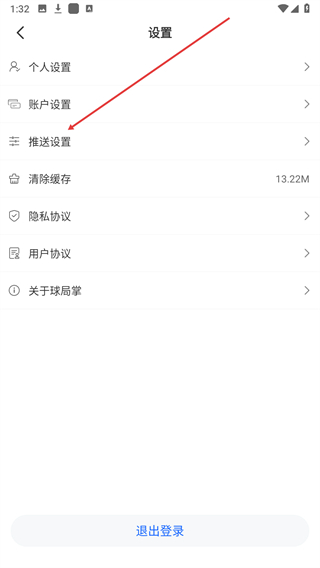 3、进入设置页面,找到推送设置选项并点击进入。
