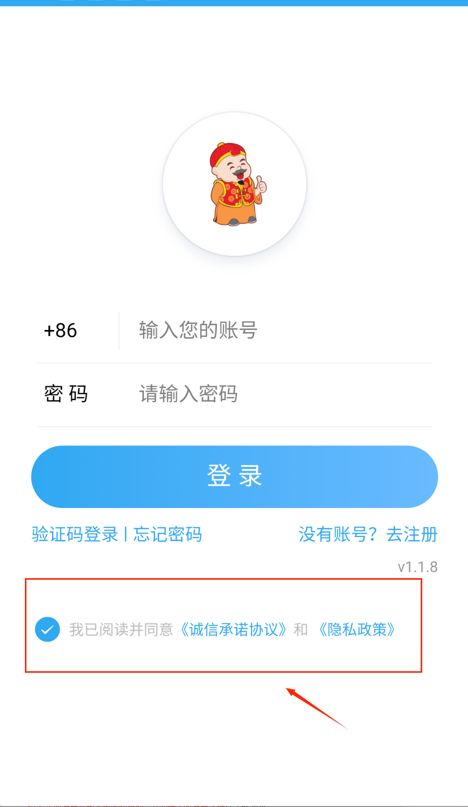 4、登录前务必勾选同意协议条款,这是使用服务的前提呀。遇到问题可查看底部v1.1.8版本说明哟。