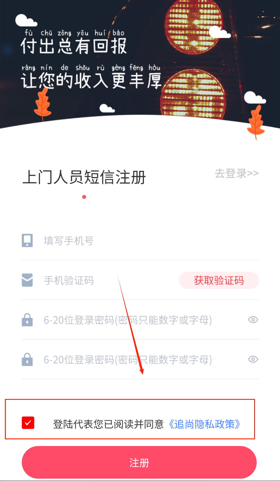 3、注册时需勾选同意隐私政策,这是必选项,并且建议仔细阅读后再确认呀。