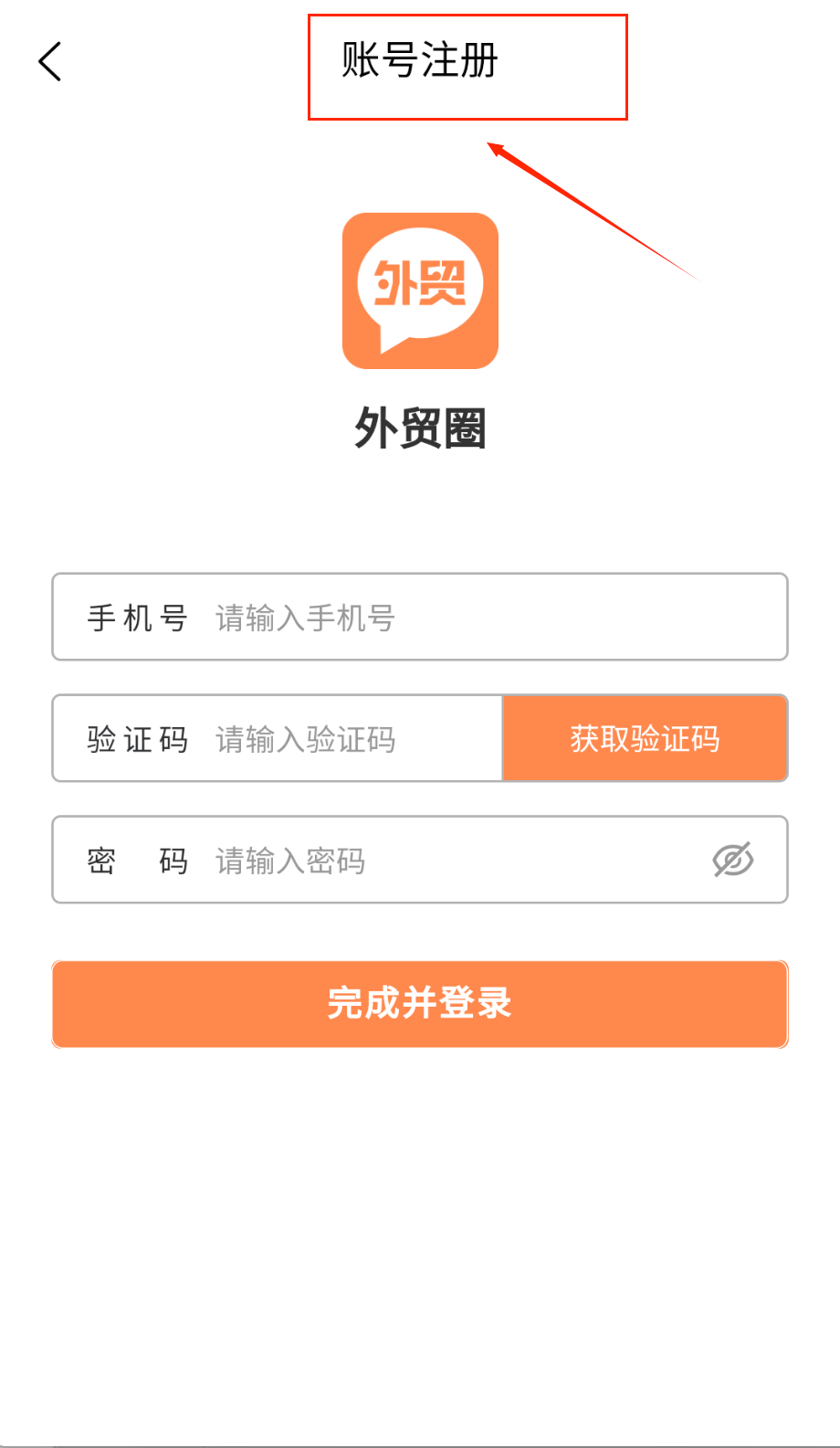1、打开APP进入注册页,填写手机号获取验证码,设置8-16位含特殊字符的密码,点击橙色完成按钮即可注册哦。