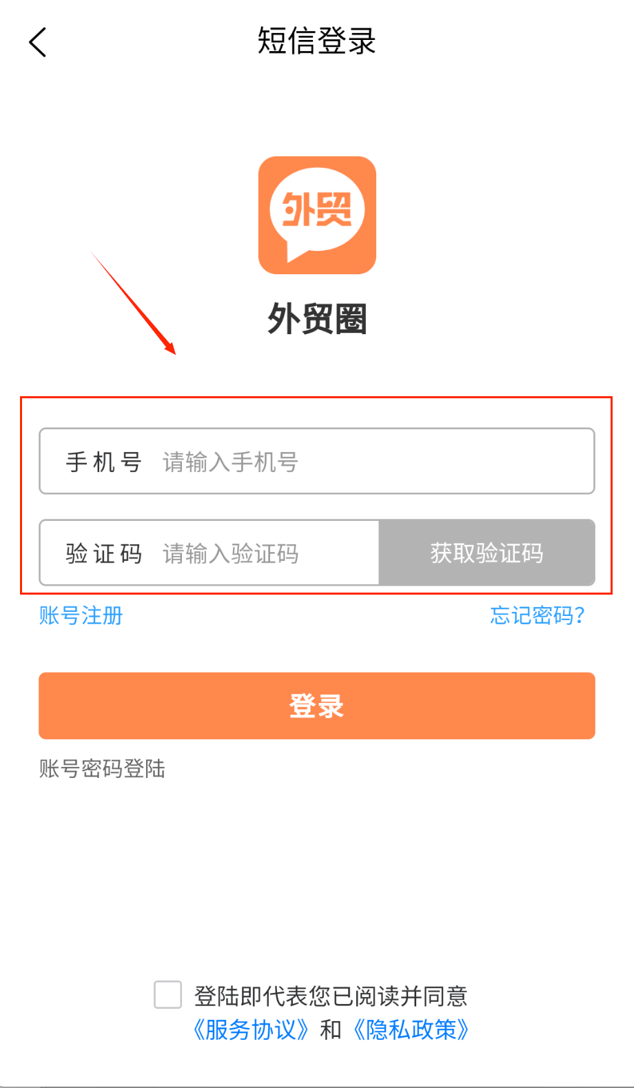 2、短信登录只需输入手机号和验证码,勾选同意协议后点击登录按钮,忘记密码可点击下方链接找回啦。