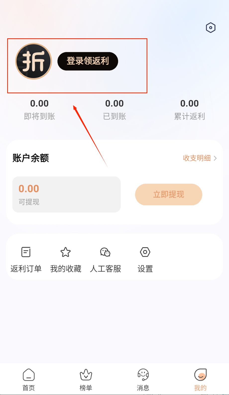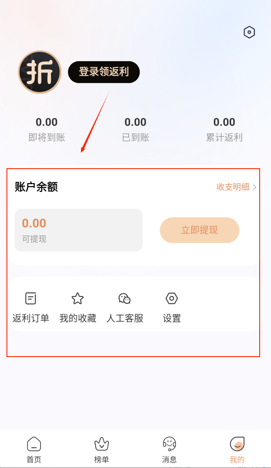 3、返利页面显示累计收益和可提现金额,提现申请3个工作日内到账哦。收益明细保留180天记录啦。
