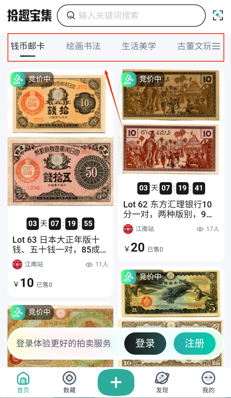 1、新用户注册需填写手机号和验证码,系统提供12大类艺术品分类,包含书画、瓷器、珠宝等,点击藏品可查看高清图片和鉴定证书哦。