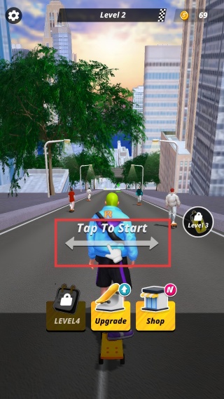 2、进入【Level-2】关卡,点击【Tap-To-Start】启动比赛,左右滑动屏幕操控滑板,开启竞速挑战。