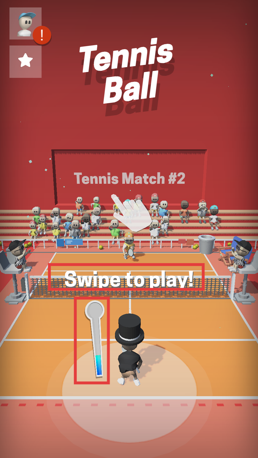 1、在【Tennis-Ball】的【Tennis-Match-#2】中,按【Swipe-to-play!】提示滑动屏幕发球,借助进度条把控发球力度开启比赛。
