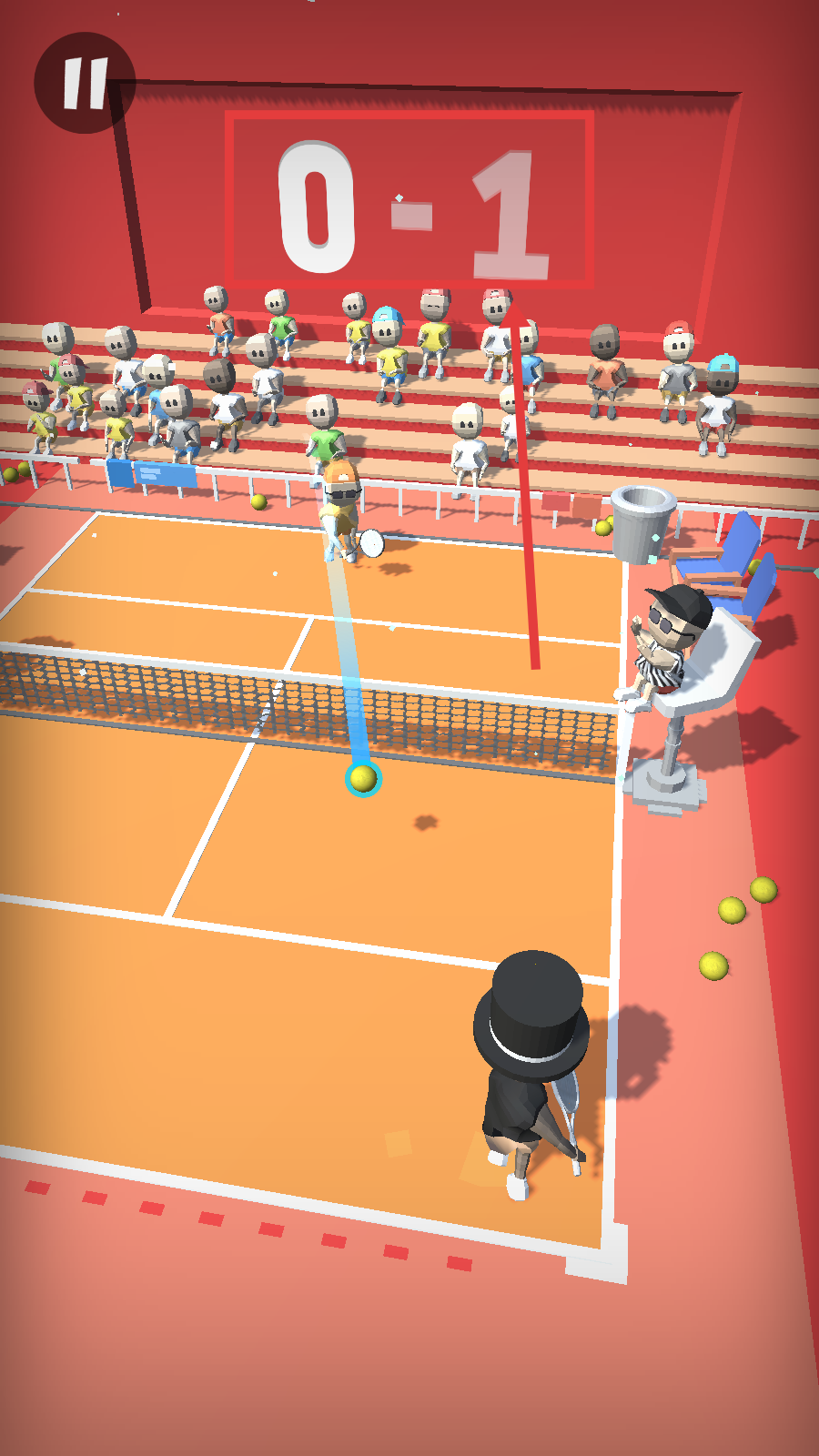 2、比赛时紧盯【0-1】比分,根据网球轨迹滑动屏幕击球,调整角度与时机,努力追平分差争取反超。
