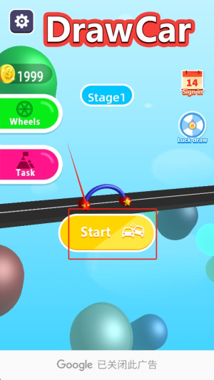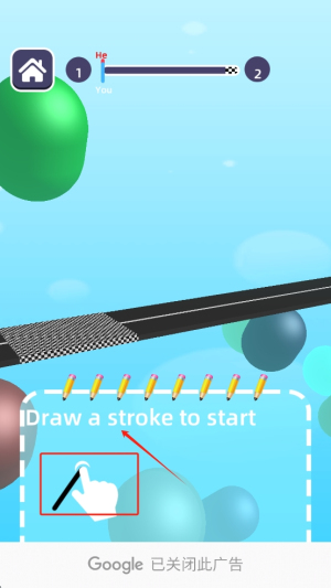 3、绘制车辆:在游戏进行中,按照提示“Draw a stroke to start”绘制车辆的轮廓。