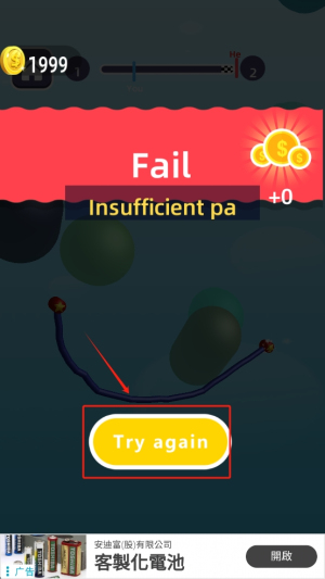 4、重新开始:如果游戏失败,点击“Try again”按钮重新开始当前关卡。