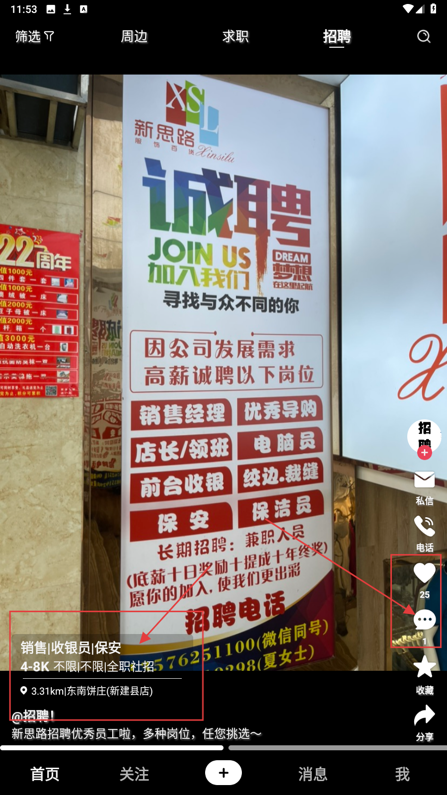 2、进入评论区,在输入框可留言咨询岗位细节或表达意向。