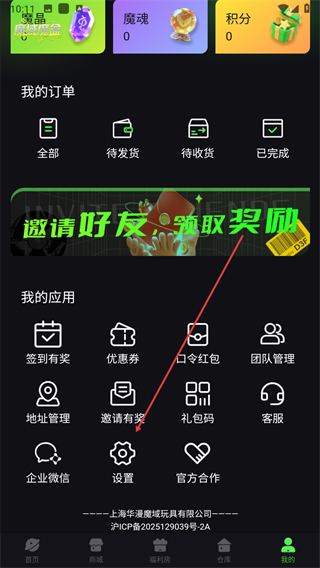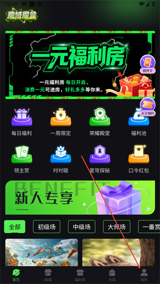 1、打开魔域魔盒的首页,点击底部我的选项进入个人界面。