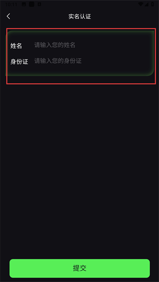 4、在实名认证页面输入姓名和身份证信息,点击提交完成认证。