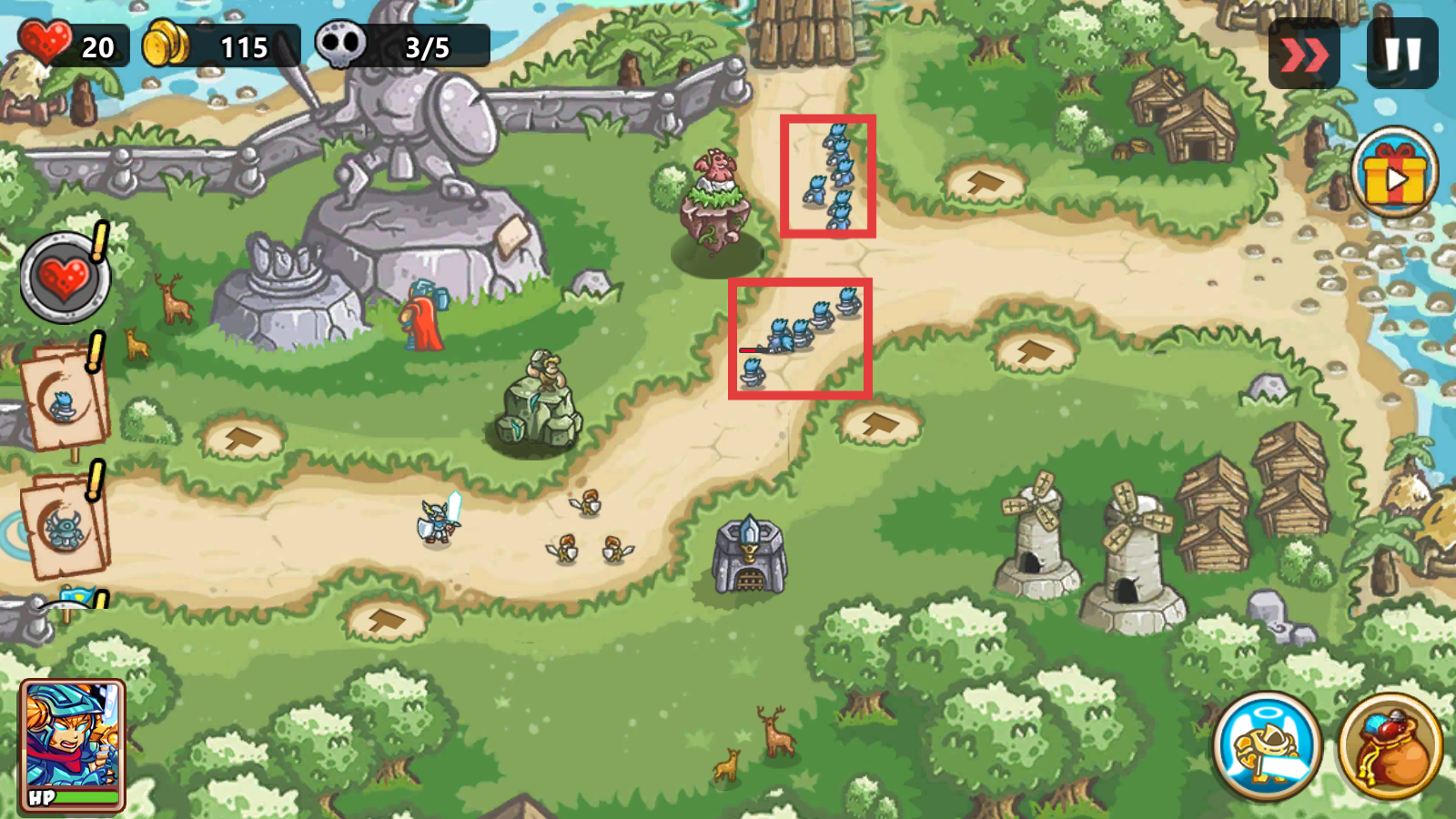 1、核心布防操作:在地图节点建造箭塔构建防线,依据怪物行进路线优化布局,阻挡黑暗势力冲击确保王国安全。