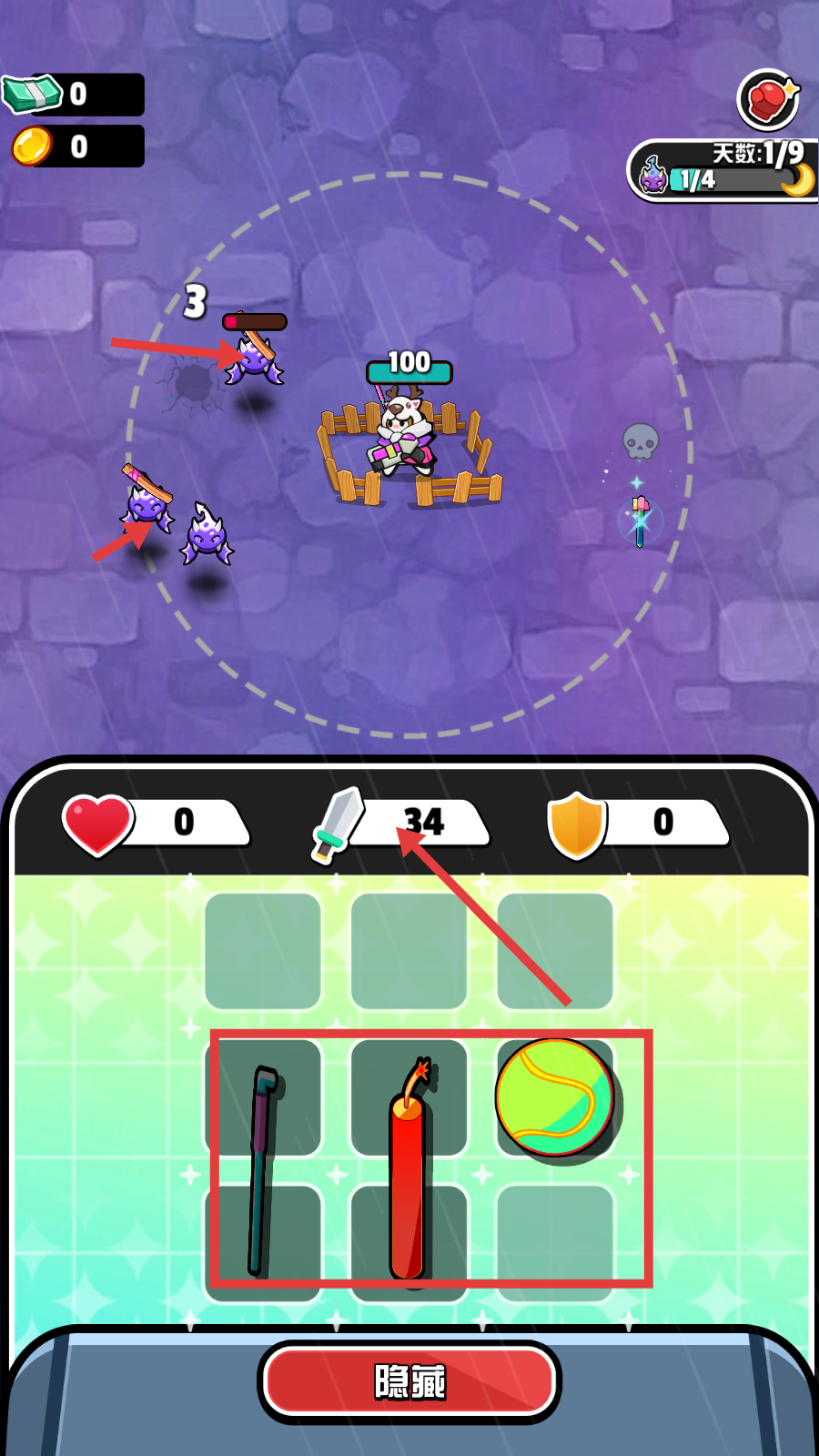 4、守护策略实施:从基础教程学习装备布阵,合理分配背包空间应对多波次进攻,通过合成进阶强化防线抵御最终入侵攻势。