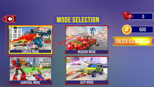 3、挑选模式:在“MODE SELECTION”界面点“CAREERMODE”,然后点“UNLOCK ALL MODES”旁的确认键。