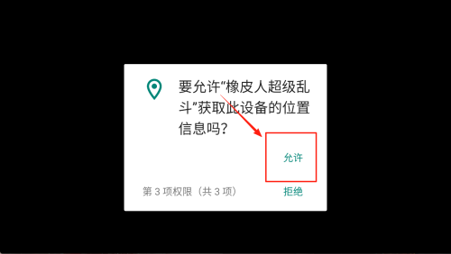 1、同意权限:在“橡皮人超级乱斗获取位置信息”弹窗点击“允许”完成授权。