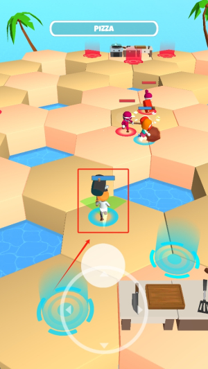 3、收集披萨:控制角色移动到披萨上方,自动收集披萨。