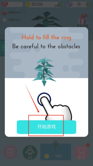 2、学习操作:根据提示,长按屏幕以填充圆环,注意避开障碍物。