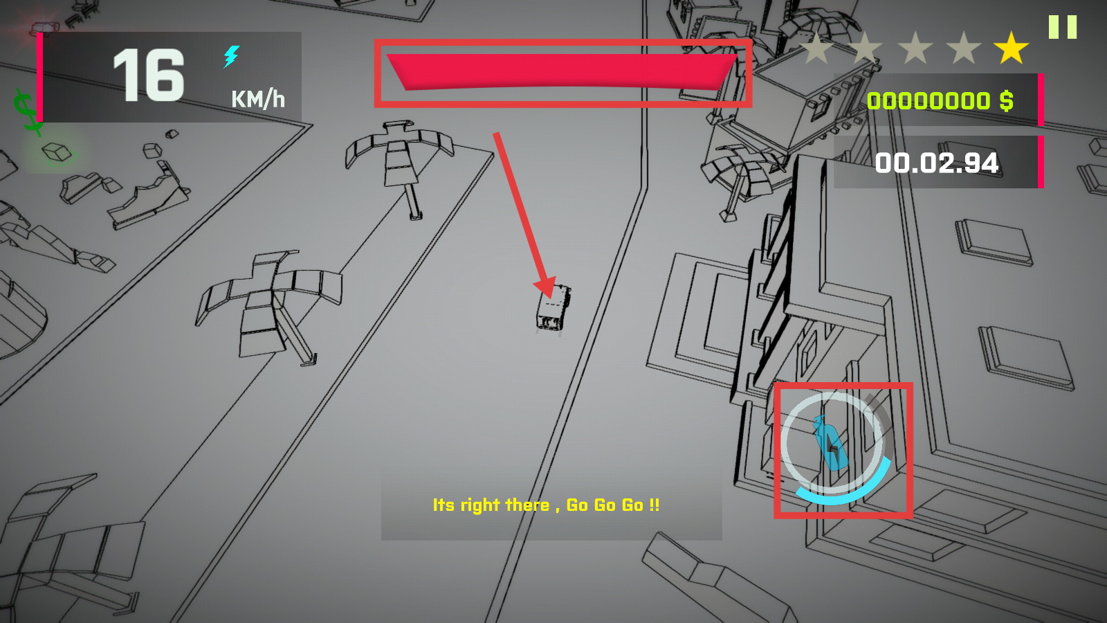 2、初期保持【16-KM/h】稳定行驶,留意蓝色闪电道具,跟随提示快速接近目标区域。