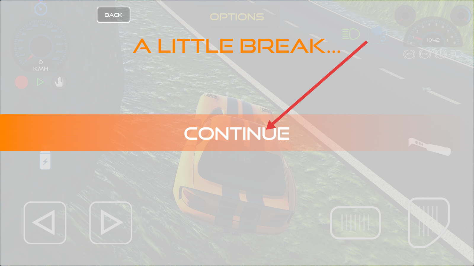 4、暂停后点击【CONTINUE】,快速回归赛道,继续专注驾驶,利用操作技巧挑战更高里程记录。