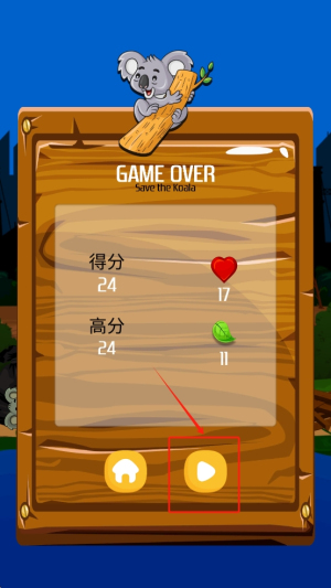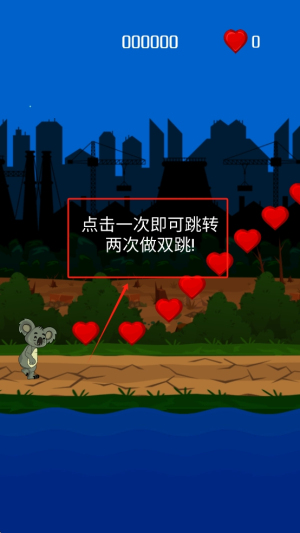 3、拯救考拉:通过点击屏幕控制角色跳跃,成功拯救被困的考拉。