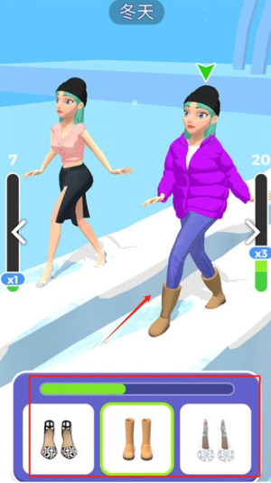 4、完成装扮:为角色搭配好服装后,点击箭头按钮完成装扮并进入下一环节。