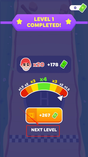 4、进入下一关:点击“NEXT LEVEL”按钮,领取奖励并进入下一关。