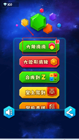 1、选择游戏模式:在游戏主界面选择不同的游戏模式,如“六角消消”或“六边形消除”。